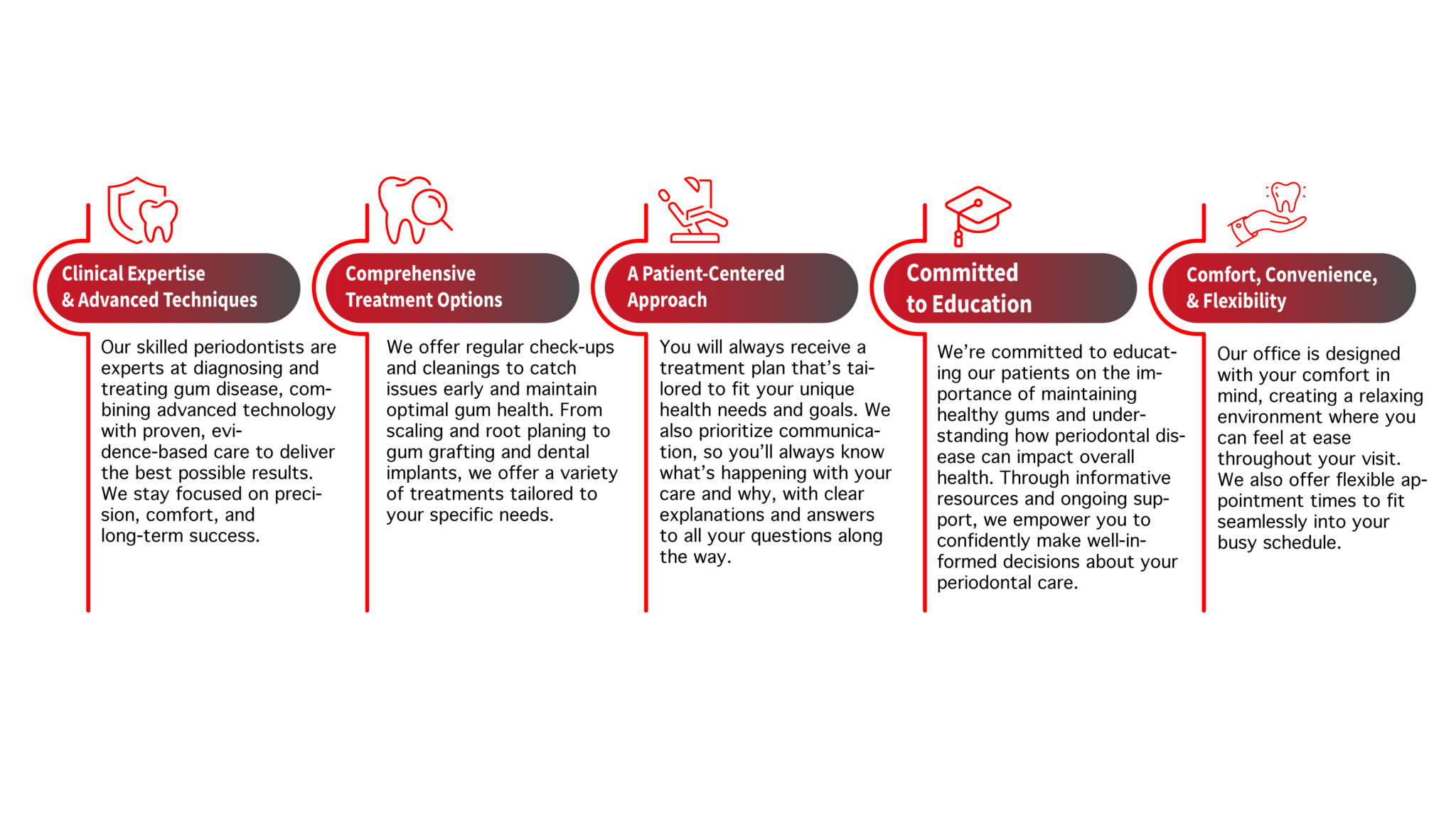 At our periodontal office, we prioritize your gum health as a fundamental aspect of your overall well-being. Our mission is to provide personalized, high-quality periodontal care that fosters healthy smiles and enhances your quality of life.